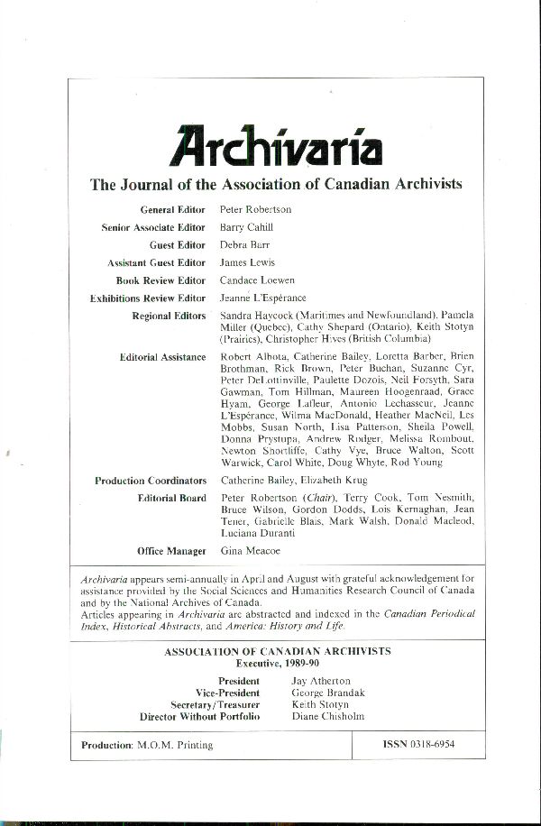 Archivaria 30: Religious Archives (Summer 1990)